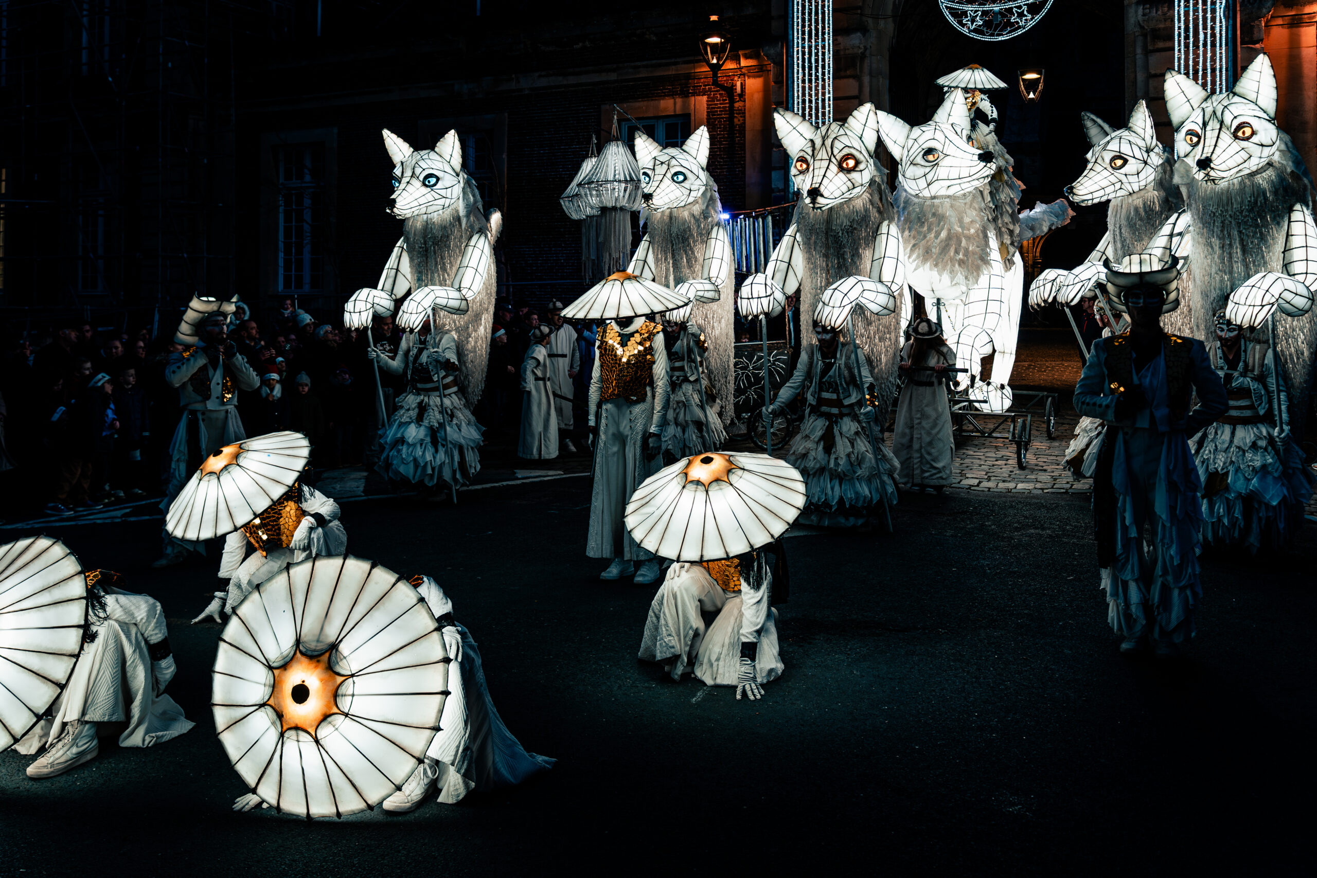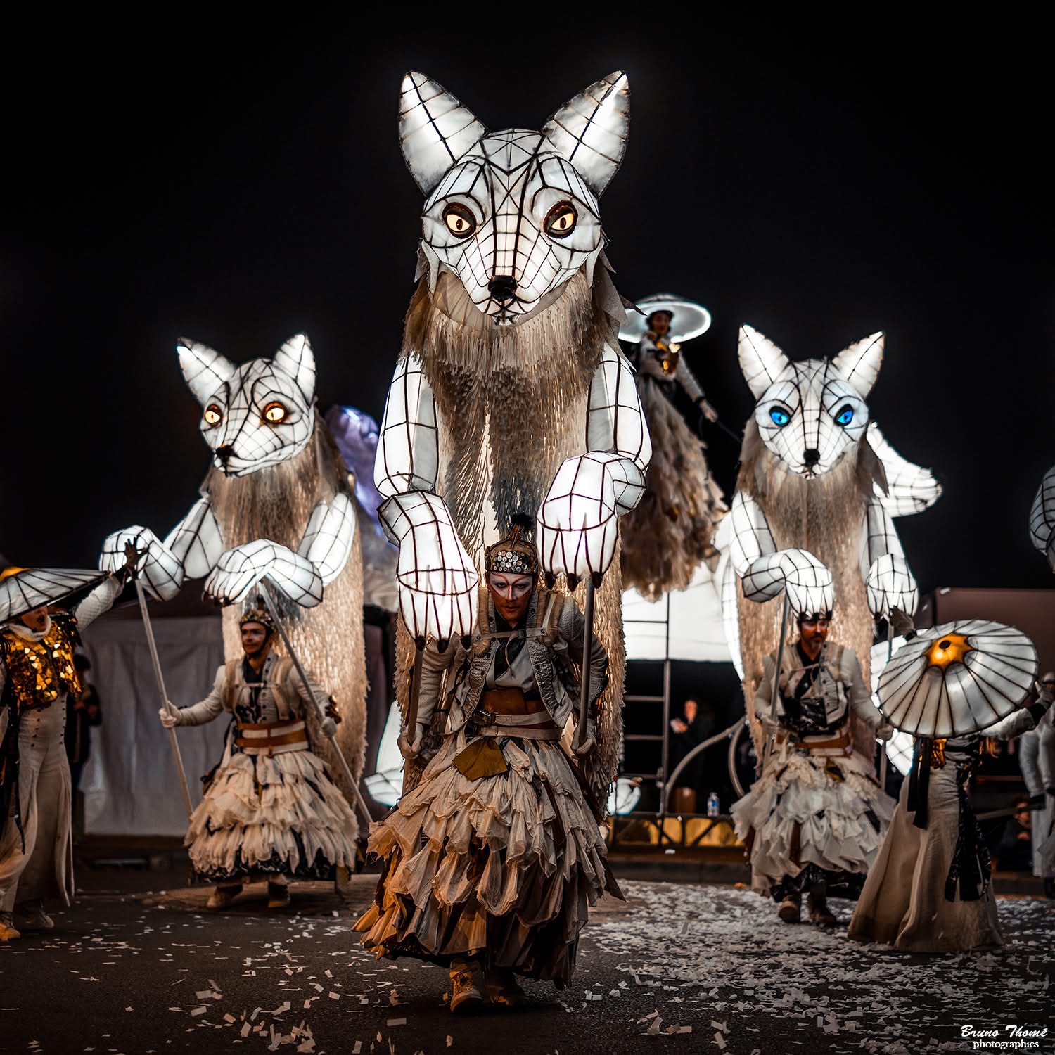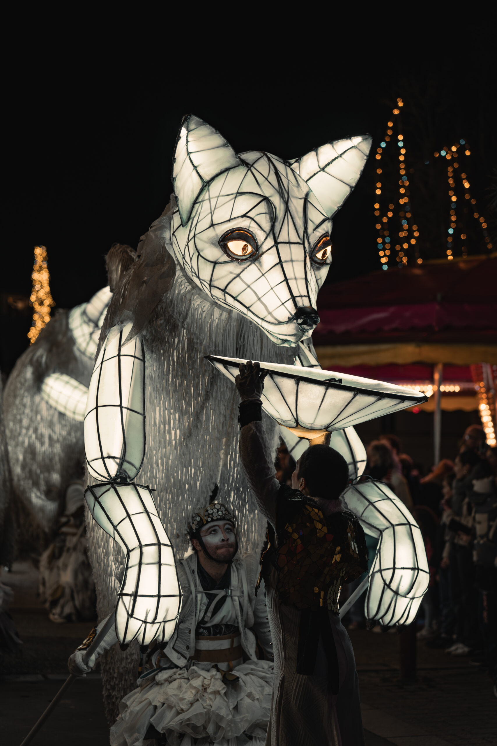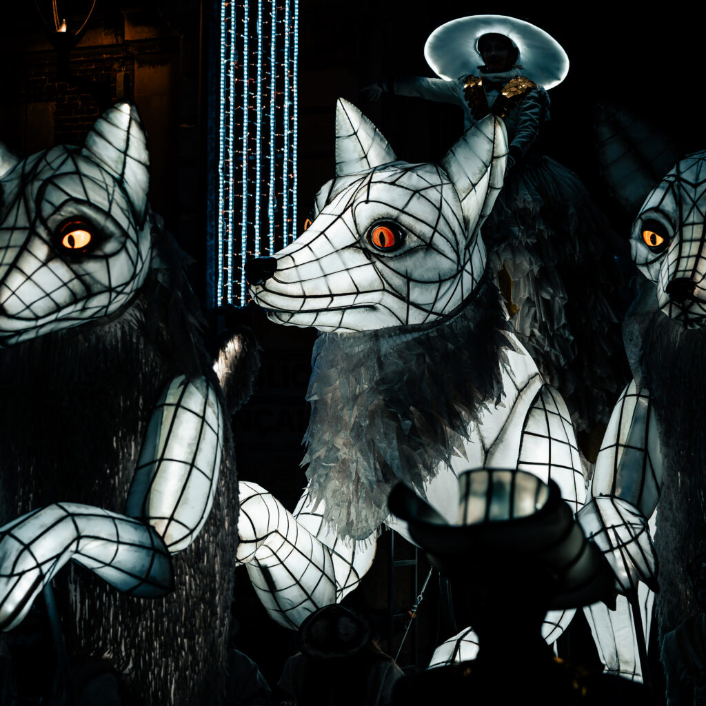 - 5 Snow Foxes, giant illuminated puppets