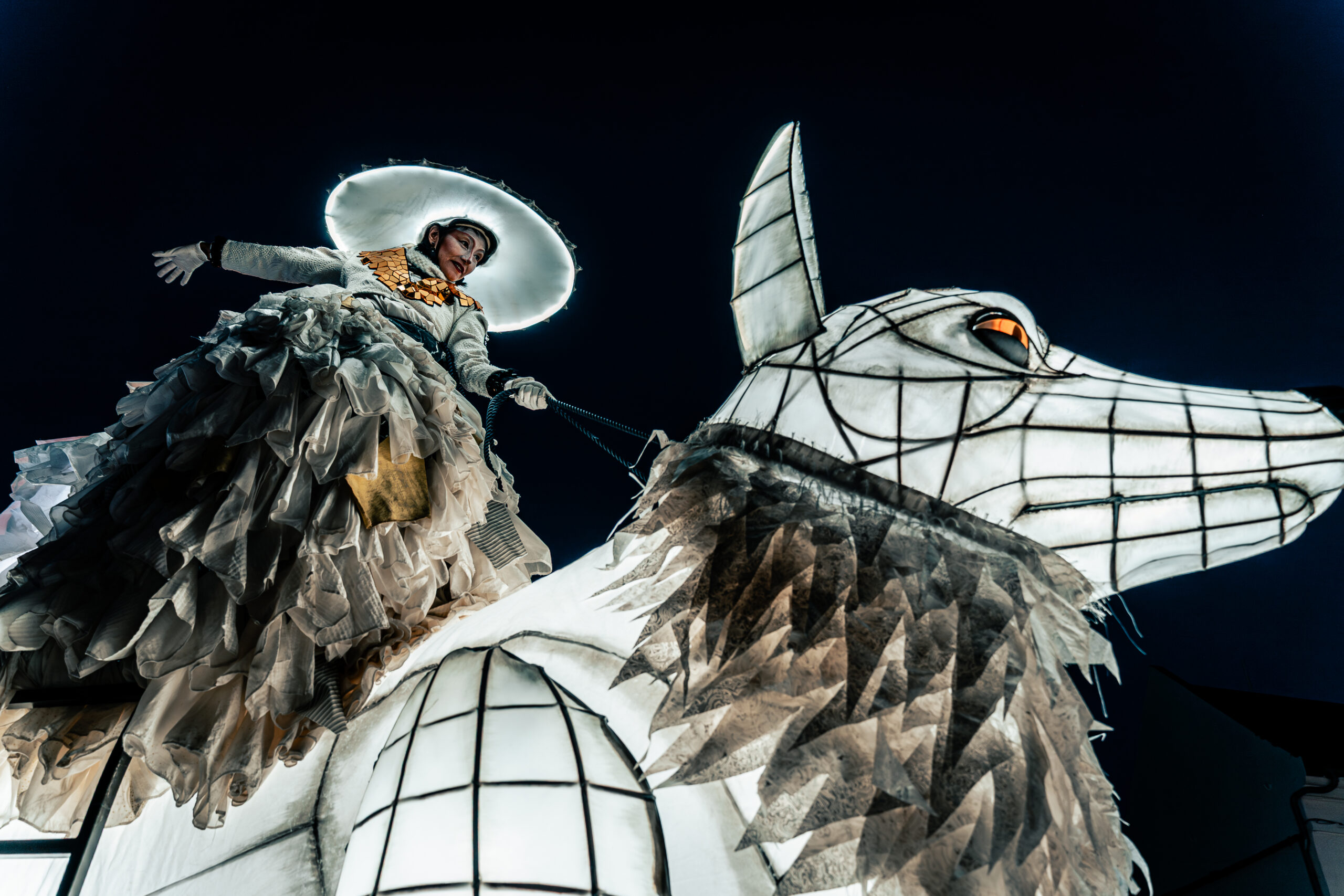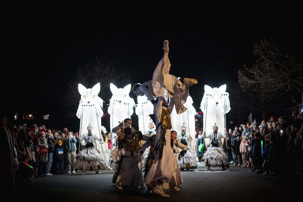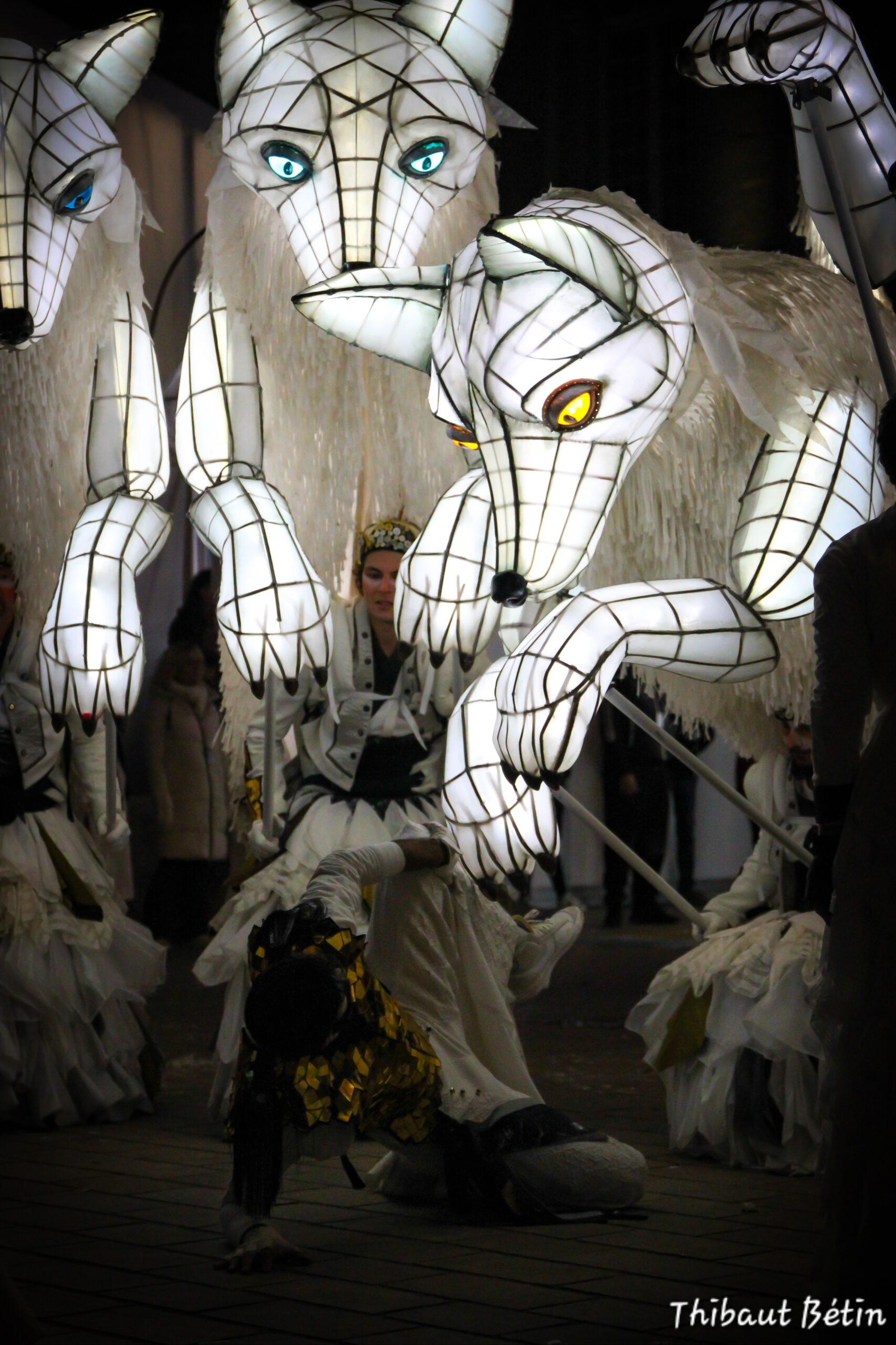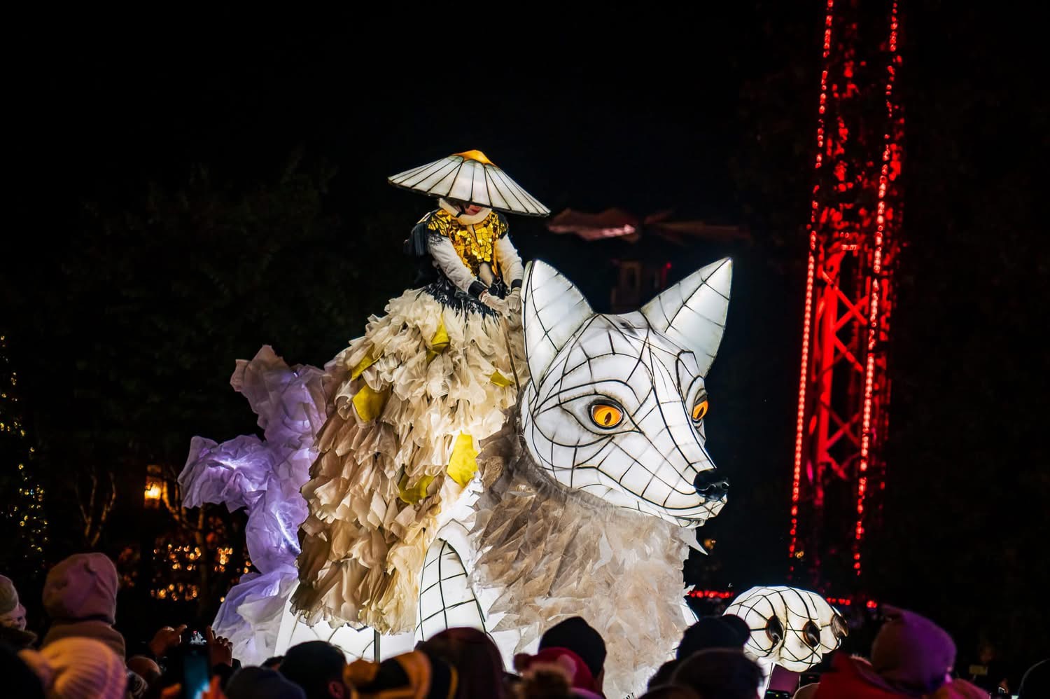 - 5 Snow Foxes, giant illuminated puppets