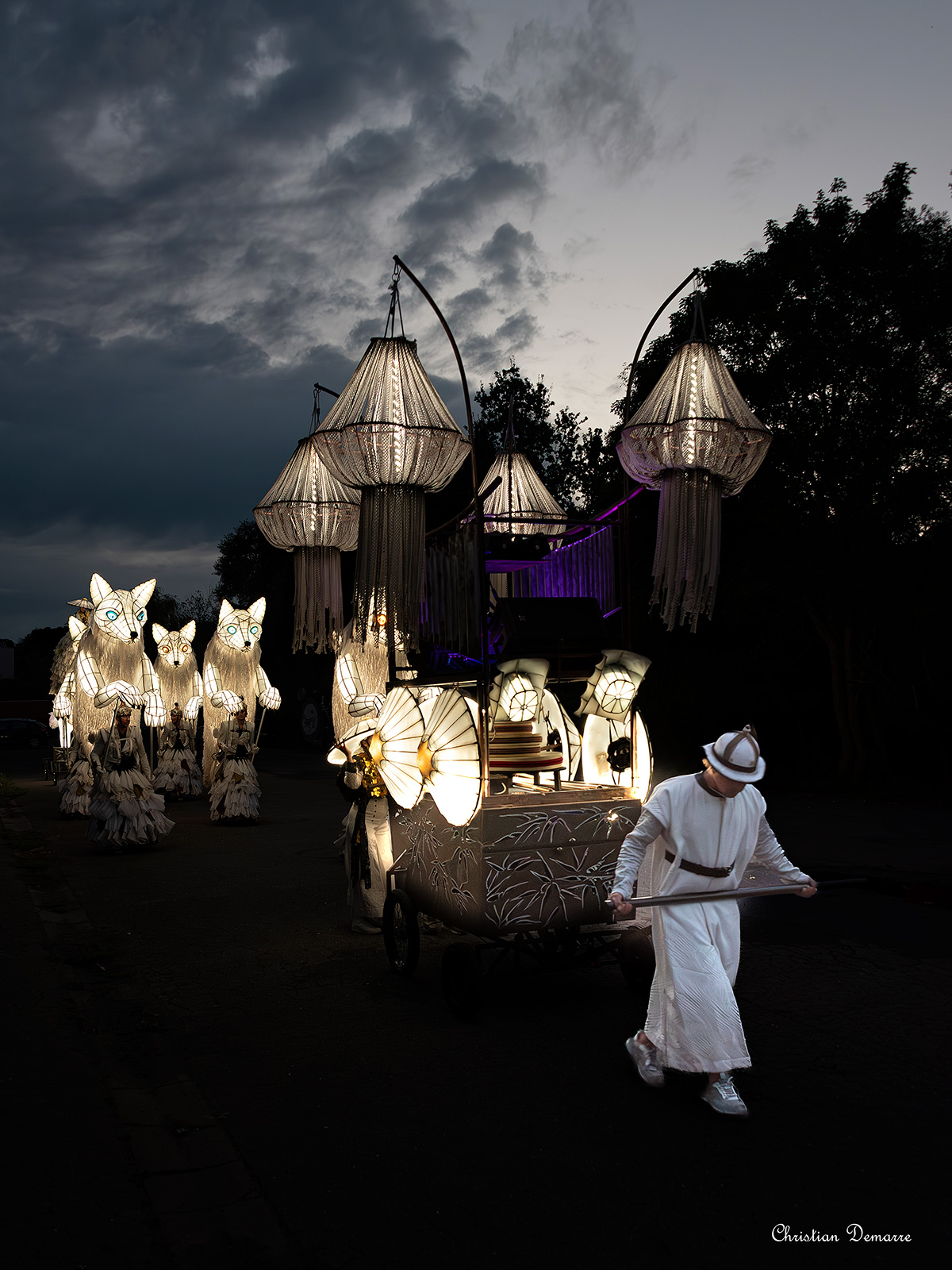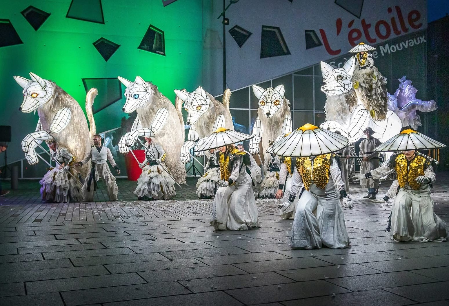- “Le Renard Blanc”, an articulated musical machine, ridden by an actor.
