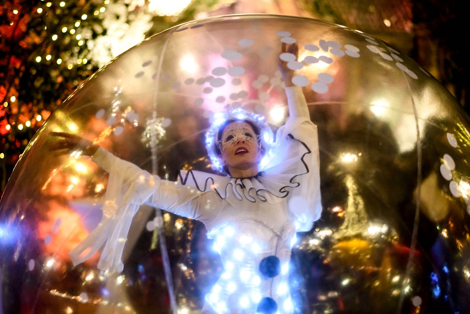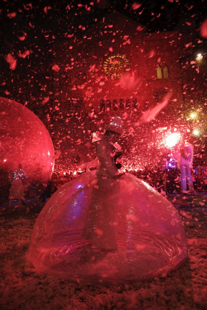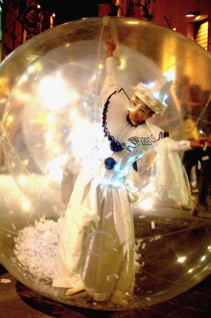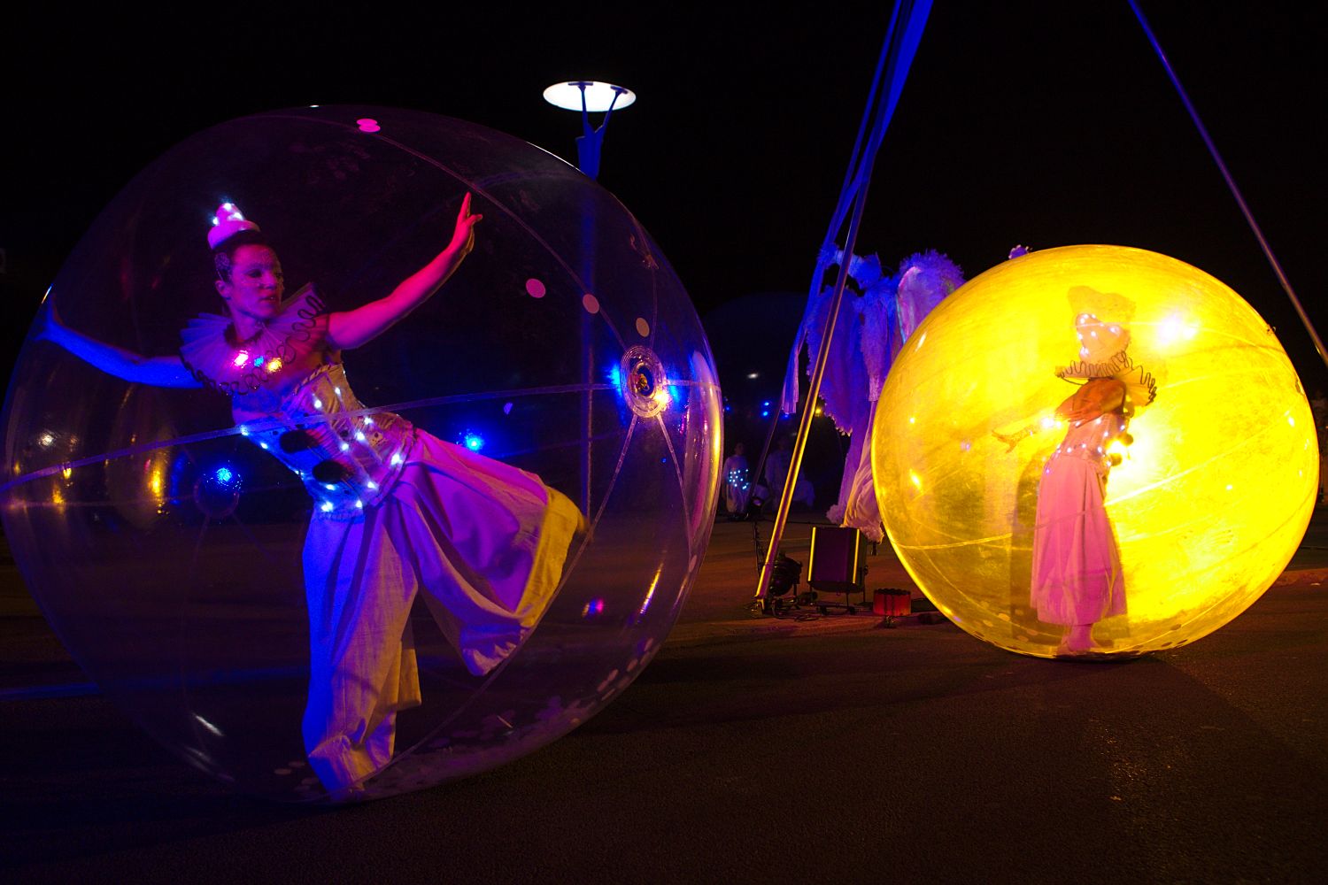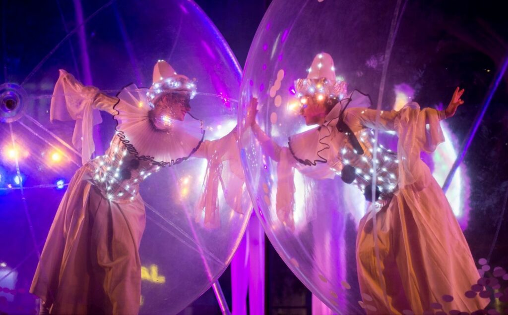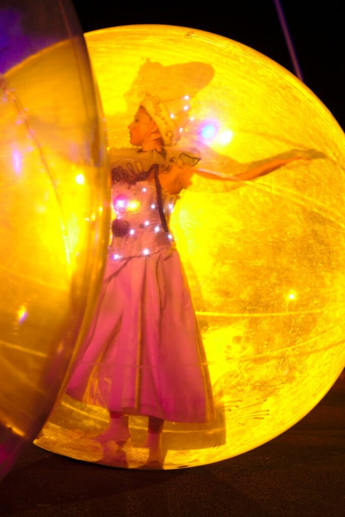 Format: Luminescent street performance with possibility to include a final show
