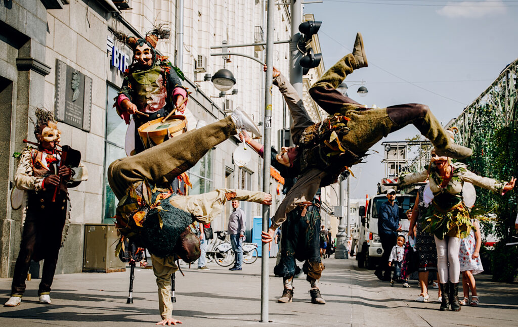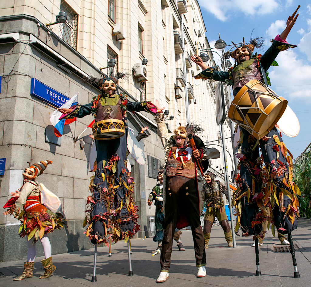 - The Rascals: 4 stiltwalkers on jumping stilts driving the yurt