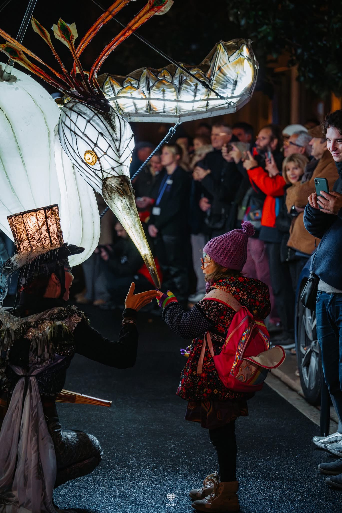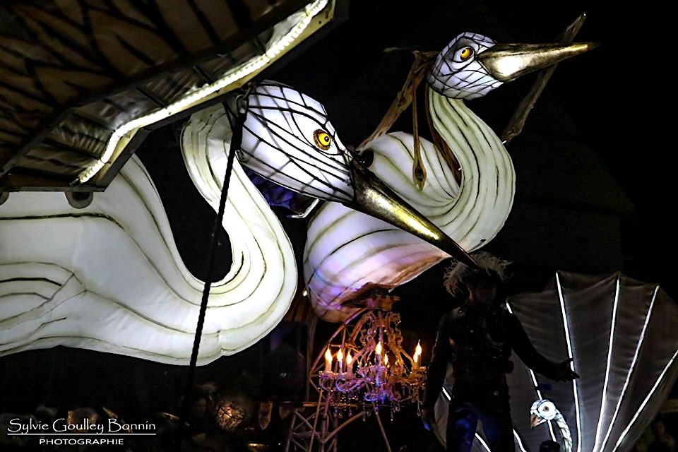 - « La Garza » : Punto central – Maquina articulada inflada luminosa conducida por un actor, estructure motorizada y articulada – sonorización integrada