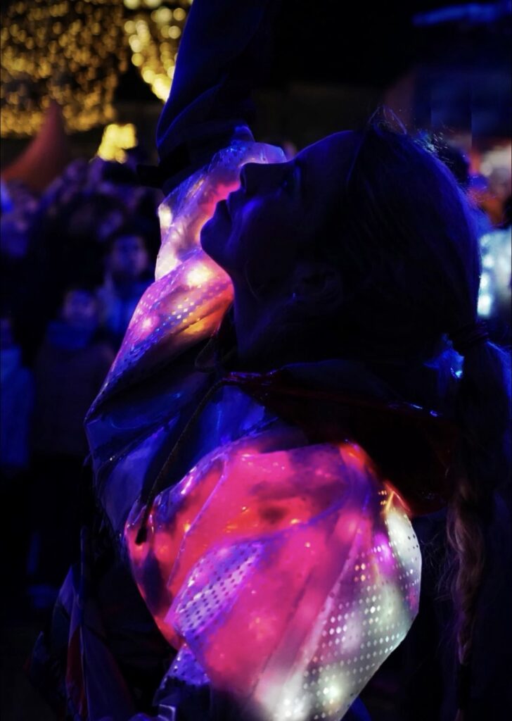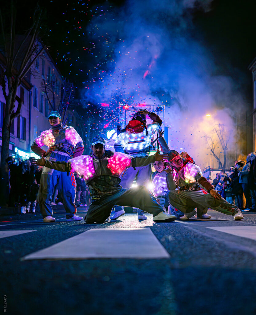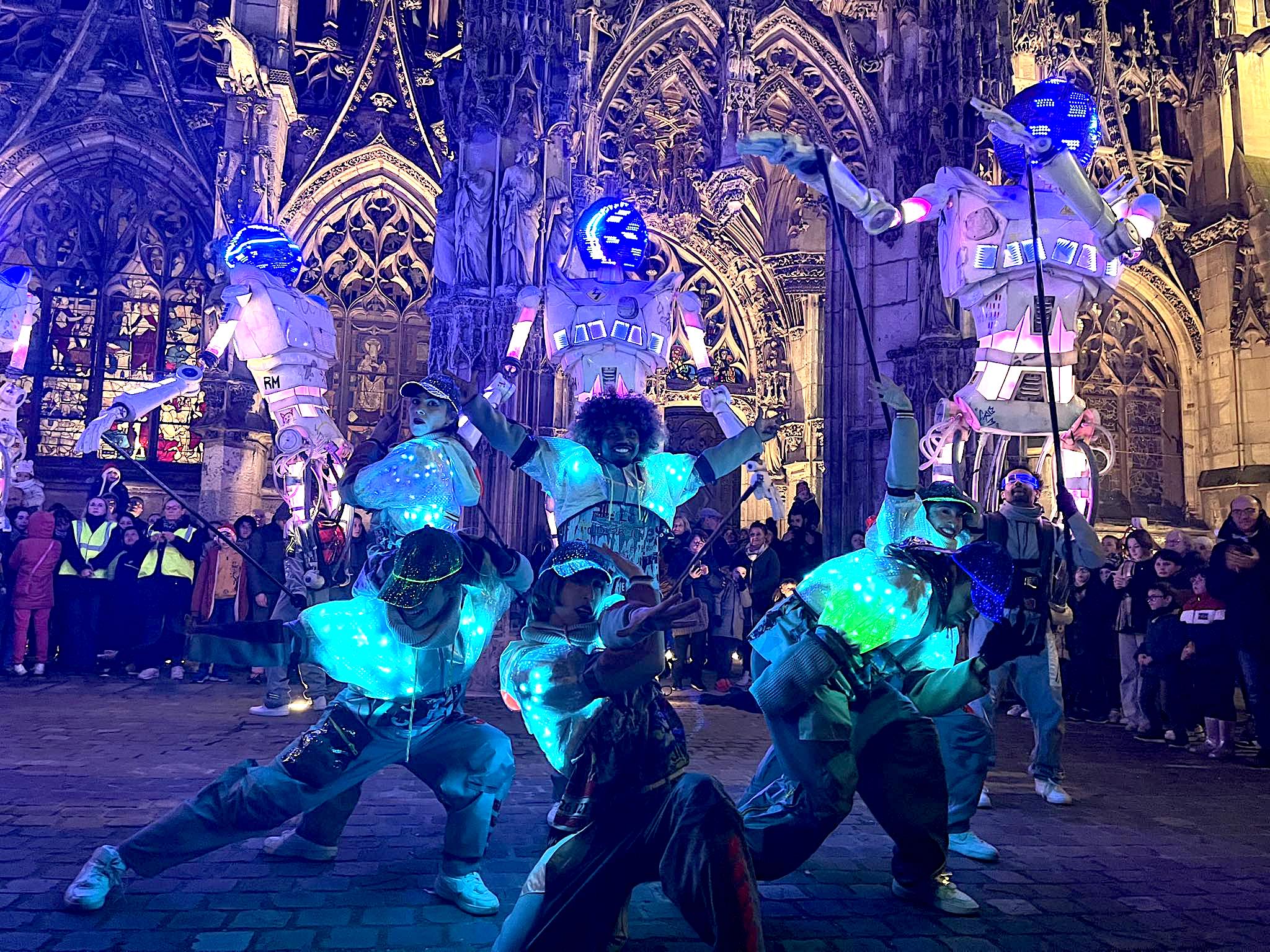 Format : Fresque de rue lumineuse en mouvement avec des scénettes chorégraphiques fixes