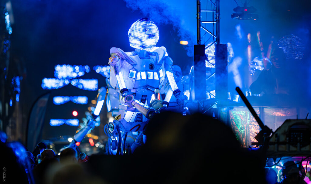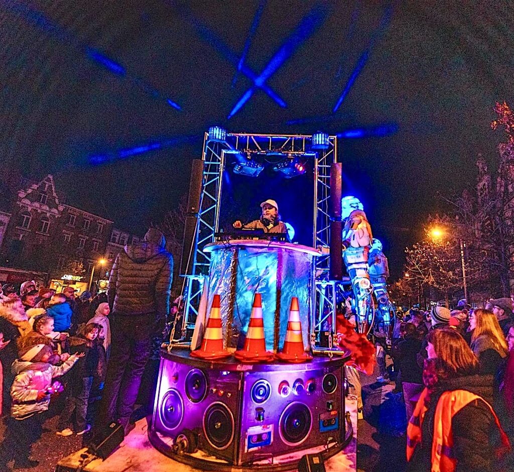 - « La tour DJ » : 1 DJ et 1 pilote de Machine musicale – tirée par un petit véhicule et conduite par un comédien. Sonorisation, lumières, confettis et pyrotechnie intégrés