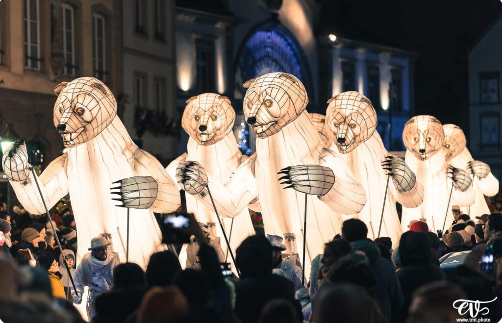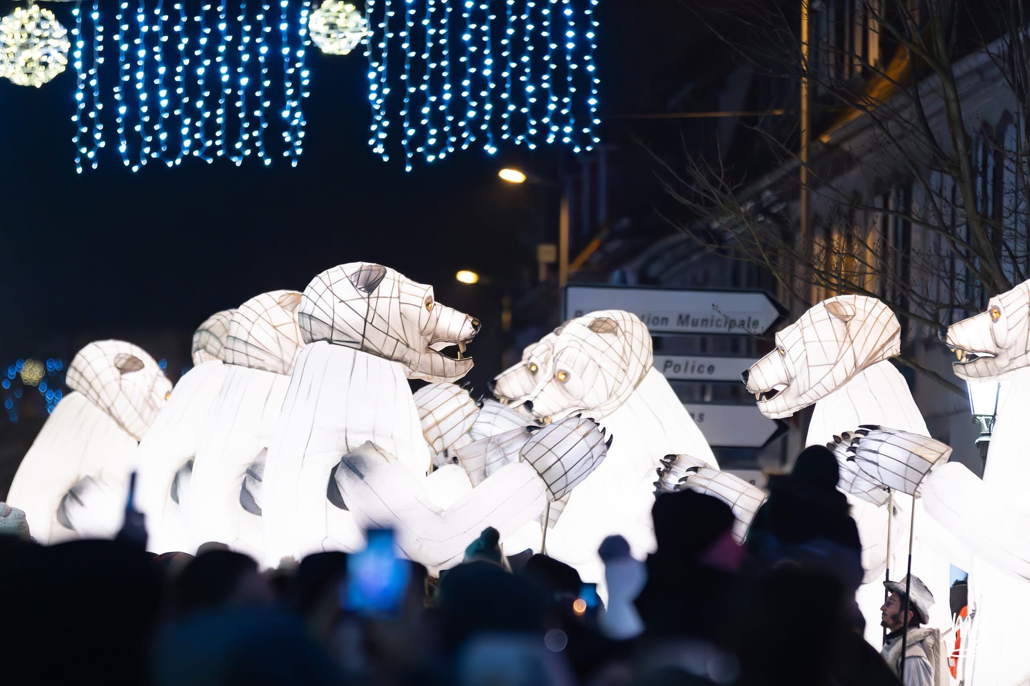 - Les Ours : de 4 a 8 manipulateurs de marionnettes articulées géantes gonflées et lumineuses